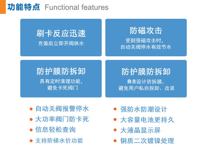 材质:纯铜、食品级高强度ABS外壳 口径:DN15~DN300 功能:预付费、阶梯水价 温度:冷水0.1~40℃、热水40℃~95℃ 适用水质:冷水、热水